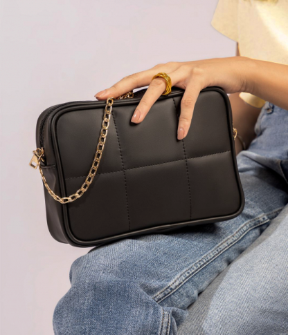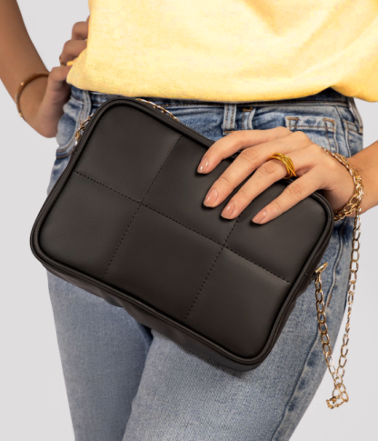 6 Quilt Crossbody Bag - Black