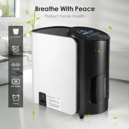 The Theratica Le concentrateur d'oxygène domestique Premium 7 LPM est un concentrateur d'oxygène à flux continu, facile d'utilisation et doté de fonctions de confort intelligentes. En aspirant l'air ambiant et en filtrant l'azote, cet appareil fournit de l'oxygène de qualité médicale en continu et sans souci, 24 h/24 et 365 j/an, à des débits de 1 à 7 LPM (litres par minute). Il est idéal pour les personnes nécessitant un débit d'oxygène supérieur à celui fourni par la plupart des concentrateurs d'oxygène domestiques.