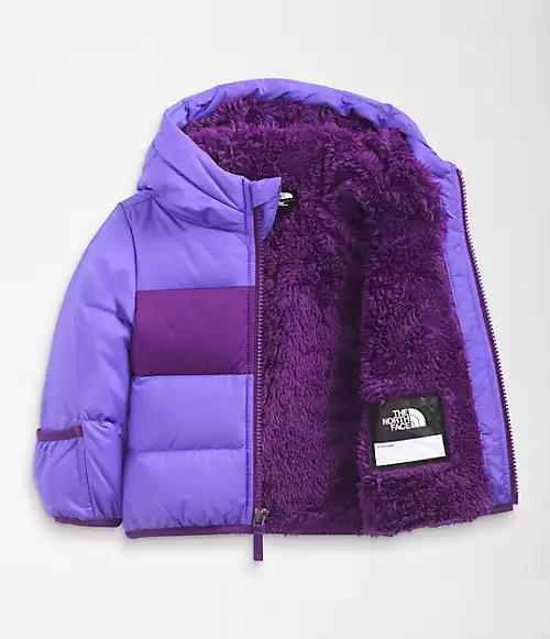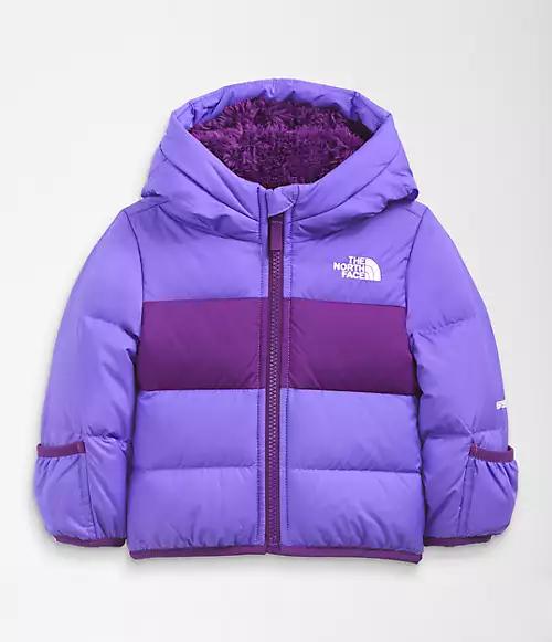 The water-repellant Infant Moondoggy Hoodie has fold-over cuffs, 550-fill Down insulation and features a cushy Sherpa-fleece hood for all-conditions coziness.